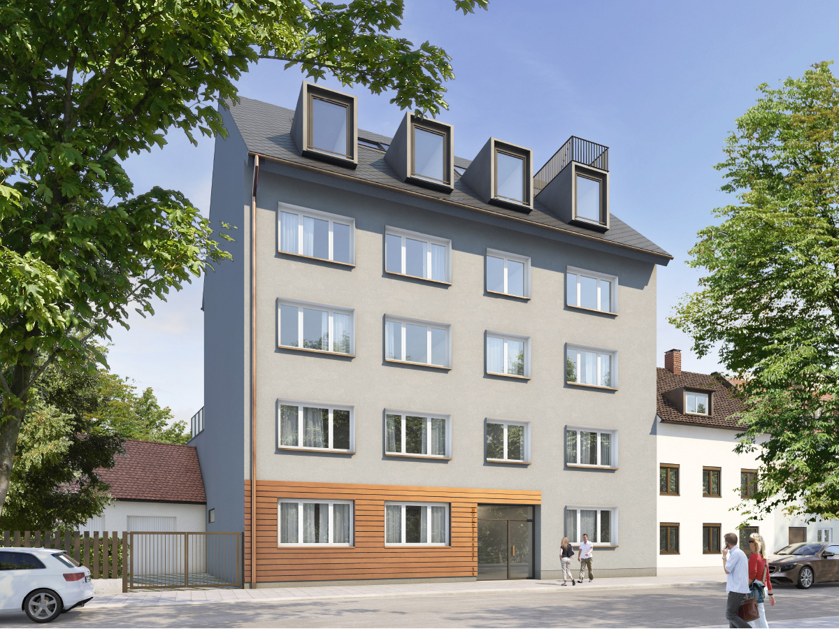Die beiden Wohnungen im DG werden ebenfalls zusammengelegt und mit dem bisher nicht ausgebauten Dachspeicher in der 2. Dachebene zu einer großen Penthouse-Wohnung über zwei Ebenen ausgebaut. Die Penthouse-Wohnung erhält auf dem erhöhten Treppenhauskopf in der obersten Ebene eine Dachterrasse in Richtung Süden und eine aufschiebbare Cabrio Verglasung mit Blickrichtung über die City von München.